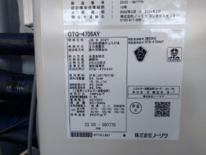 大牟田市 ノーリツ石油給湯機付ふろがまOTQ-4706AY 給湯器交換工事