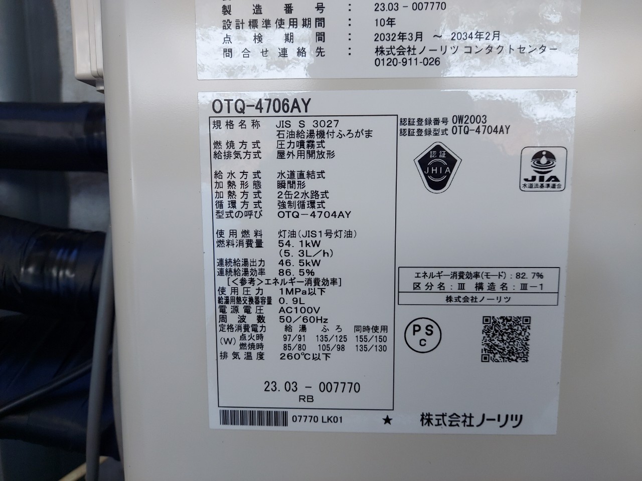 大牟田市 ノーリツ石油給湯機付ふろがまOTQ-4706AY 給湯器交換工事|山鹿 給湯器・ボイラー 激安価格 交換工事|山鹿給湯.com